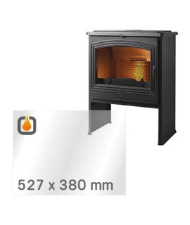 Le verre vitrocéramique est plat et transparent. Il laisse toute la chaleur de la chambre de combustion se diffuser dans la pièce chauffée, reste stable même sous chauffage intense et est extrêmement résistant aux chocs thermiques. La température maximale supportée est jusqu’à 800 °C.