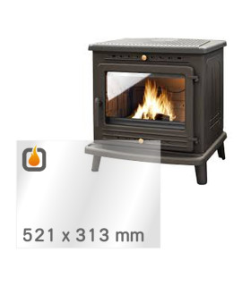 Verre vitrocéramique de rechange pour le poêle DEVILLE BETYLE, fabriqué en verre résistant à la chaleur de haute qualité (SCHOTT ROBAX®), supportant des températures allant jusqu’à 800 °C.